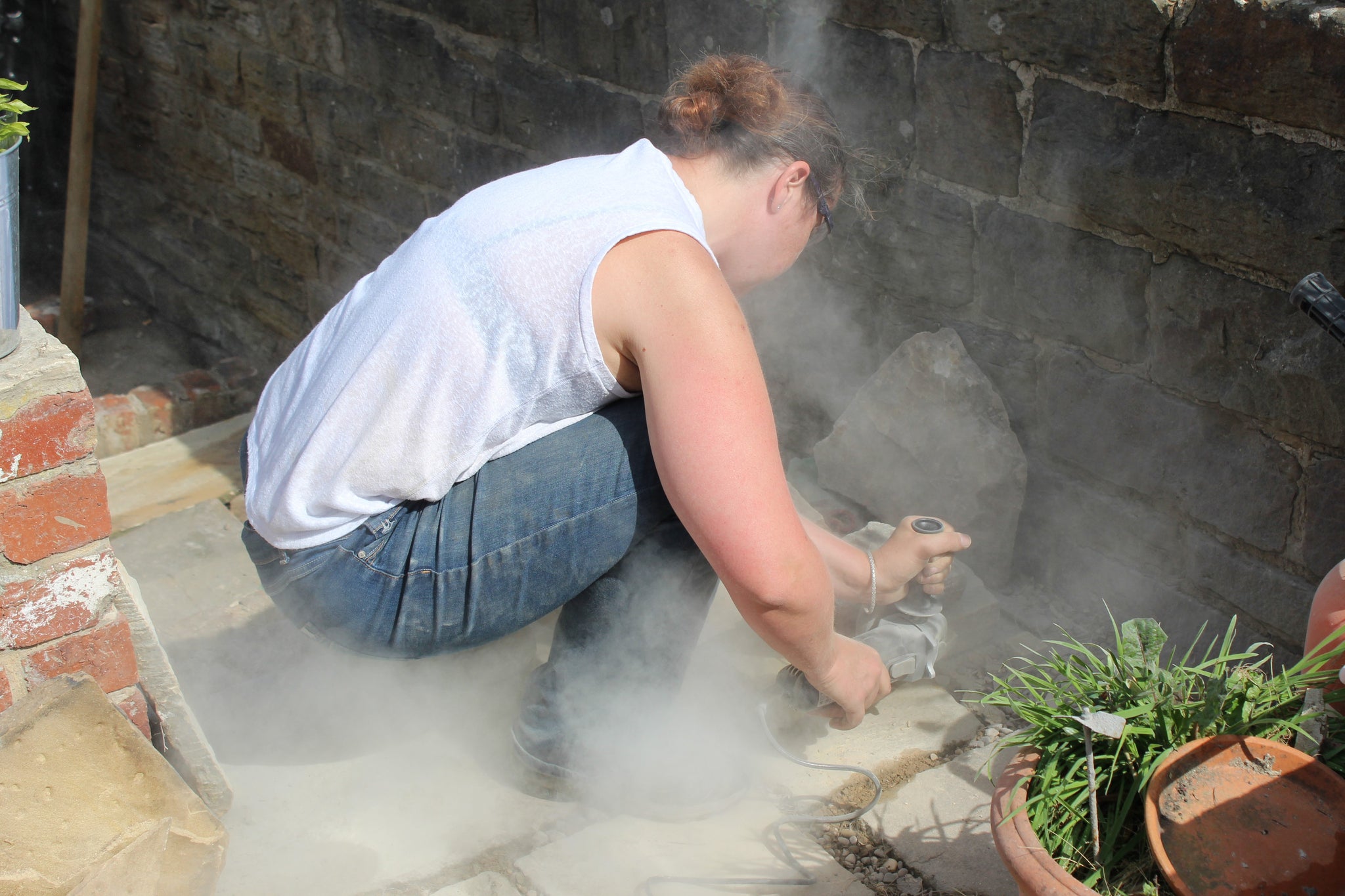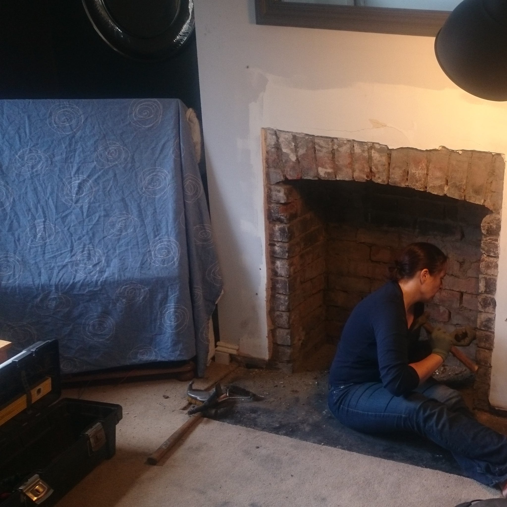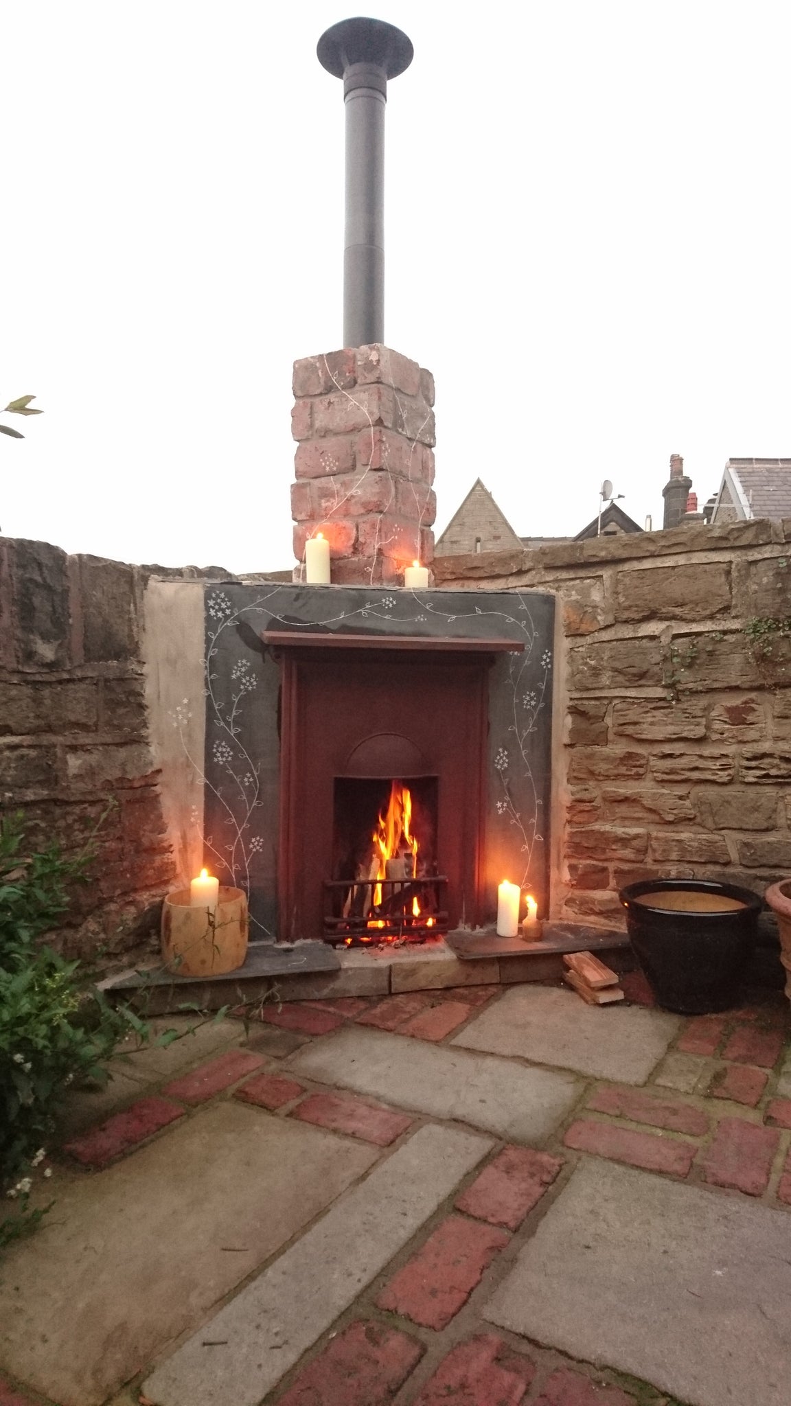 An old iron fire place has had a new lease of life as a living feature in our outdoor snug. I etched the jasmine pattern in the slate surround.